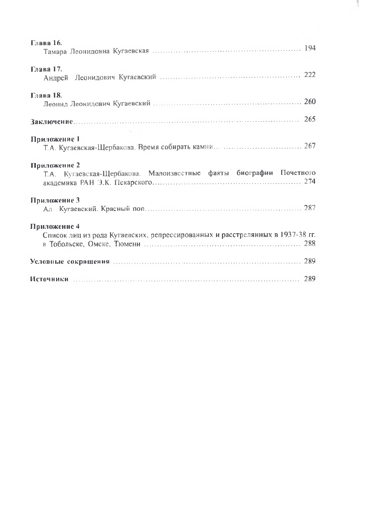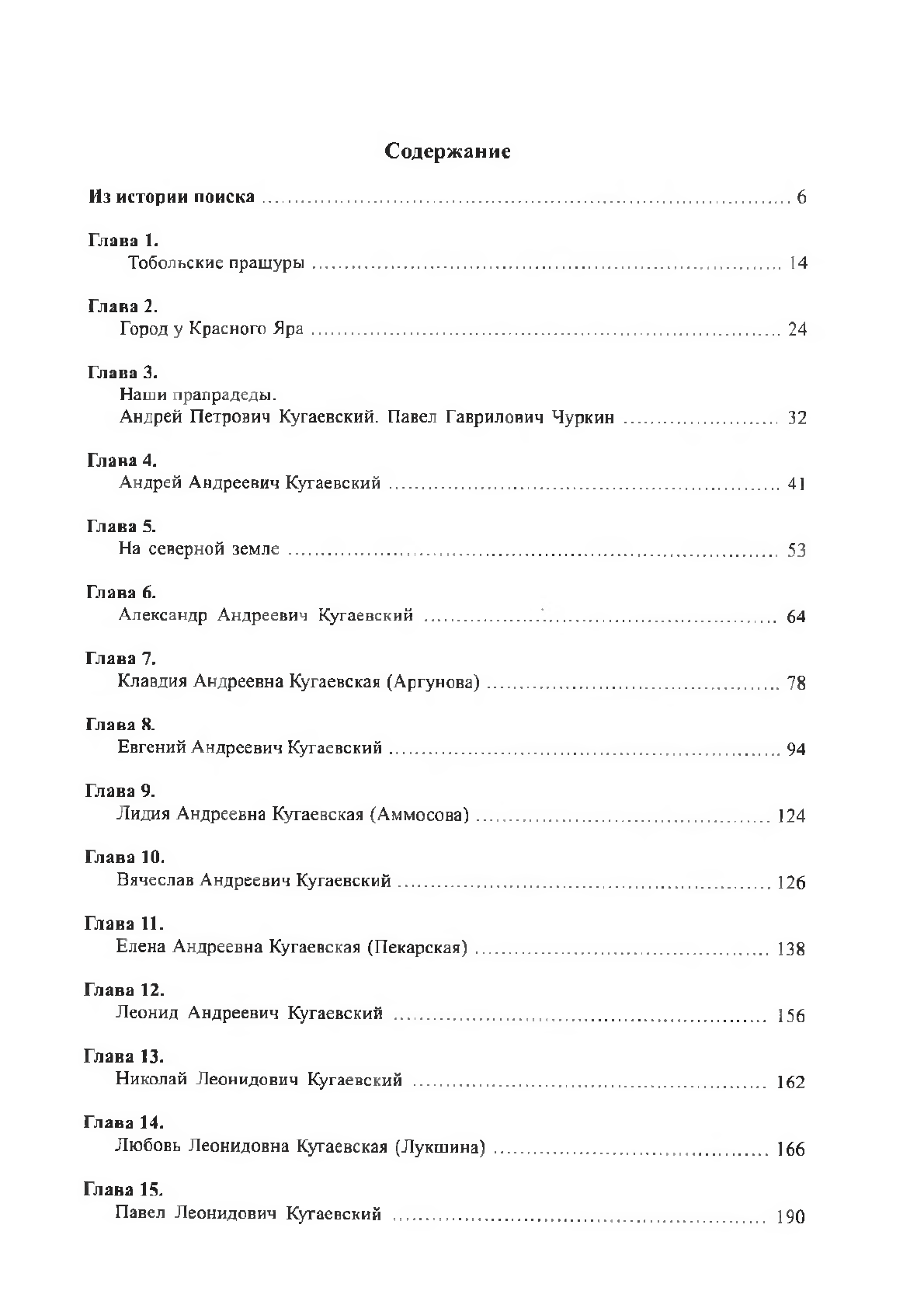 В книге излагается родословная одной из ветвей большого рода Кугаевских, появившихся в Сибири в конце XVI-начале XVII веков. История жизни 14 поколений, начиная с 1623 года, основана на архивных документах XVI-XX столетий, семейной переписке начала 20-х годов XX в., на воспоминаниях здравствующих потомков и фотографий из музейных и семейных архивов. Цель данной публикации - знакомство с жизнью и опытом прадедов, дедов и отцов, выявление непреходящих нравственных ценностей и сохранение исторической памяти рода