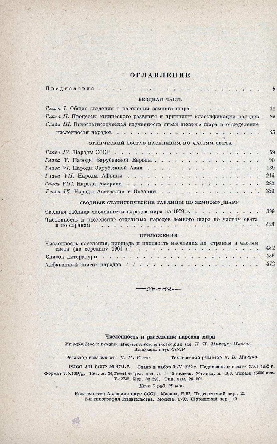 Численность и расселение народов мира / Академия наук СССР, Институт этнографии им. Н. Н. Миклухо-Маклая ; под редакцией С. И. Брука. - Москва : Издательство Академии наук СССР, 1962. - 482, [2] с., [6] л. (слож.) карт.