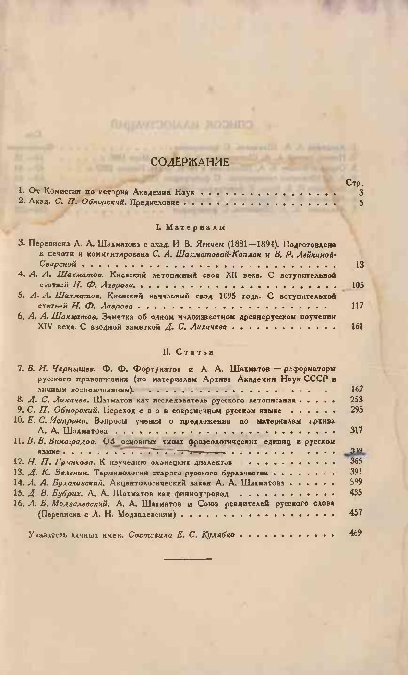 А. А. Шахматов : 1864-1920 : сборник статей и материалов / под редакцией С. П. Обнорского ; Академия наук СССР. - Москва ; Ленинград : Издательства Академии наук СССР, 1947. - 474, [2] с., [7] л. ил.