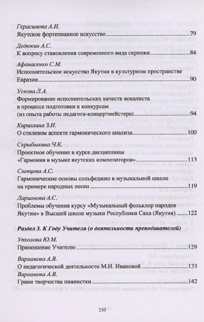 Третий выпуск Межвузовского сборника трудов, подготовленный Высшей школой музыки Республики Саха (Якутия), как и предшествующий сборник, вышедший в 2006 году, посвящен актуальным вопросам современного музыкального искусства и образования, строительству художественной культуры Якутии. В нем представлены материалы состоявшихся в ВШМ научно-практических конференций, результаты сотрудничества с вузами Якутии. Статьи сборника расположены в 4-х разделах. В первом рассматриваются различные грани проблемы повышения роли музыки и музыкального образования в развитии духовности современного общества. Во втором сконцентрированы работы, в которых представлен опыт поисков в области музыкального исполнительства и педагогики, анализируются пути строительства музыкальной культуры Якутии. Третий раздел посвящен Году Учителя - педагогической и творческой деятельности преподавателей. В последнем разделе отражены материалы состоявшегося обсуждения темы "Философия и музыка: обмен мнениями" совместно с учебно-научной лабораторией "Философские основы гражданской культуры" при кафедре философии Северо-Восточного федерального университета им. М.К. Аммосова. Издание адресовано преподавателям и студентам музыкальных учебных заведений различных типов и уровней, а также всем, кто интересуется проблемами развития музыкального исполнительства и образования, строительства художественной культуры Республики Саха (Якутия) в современную эпоху.