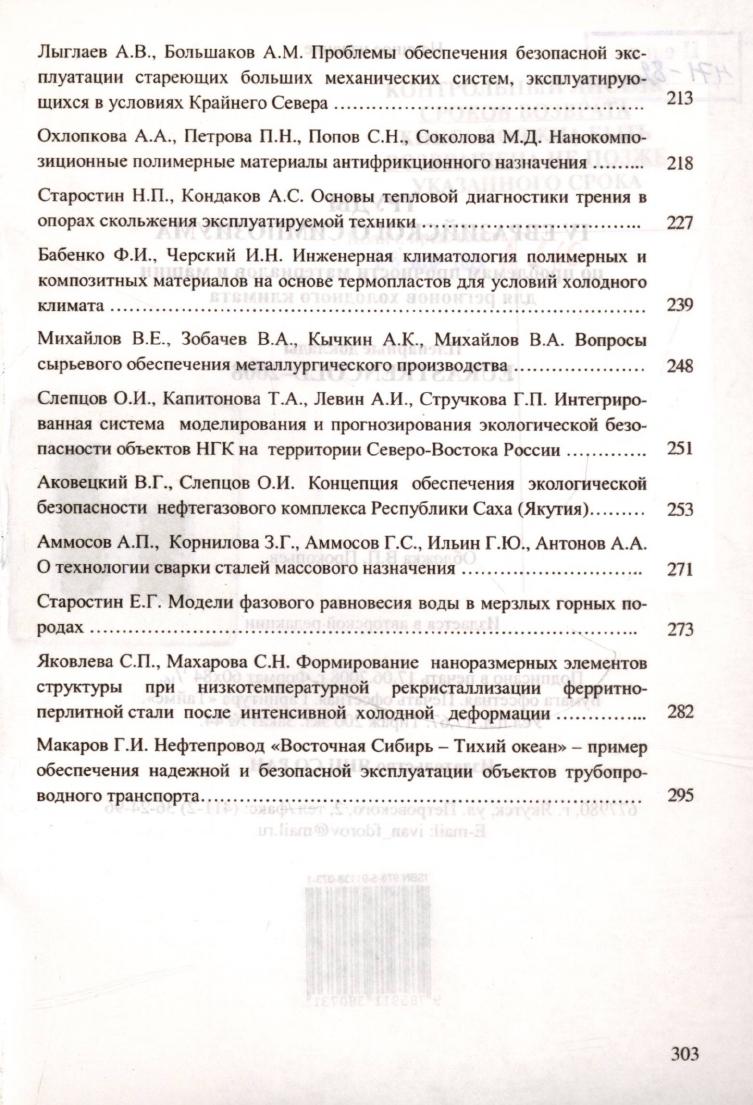 Труды IV Евразийского симпозиума по проблемам прочности материалов и машин для регионов холодного климата = Eurastrencold-2008 : пленарные доклады, 23-27 июня 2008 г., г. Якутск / [редкол.: д. т. н., проф. О. И. Слепцов (отв. ред), к. ф.-м. н. Т. А. Капитонова]. - Якутск : Изд-во ЯНЦ СО РАН, 2008. - 303 с. : ил., табл. ).