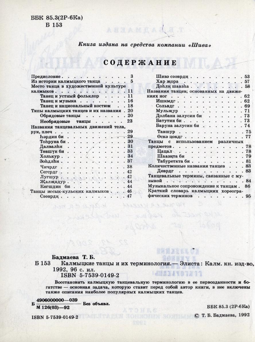 Калмыцкие танцы и их терминология / Т. Б. Бадмаева. - Элиста : Калмыцкое книжное издательство, 1992. - 95, [1] с., [4] л. ил.