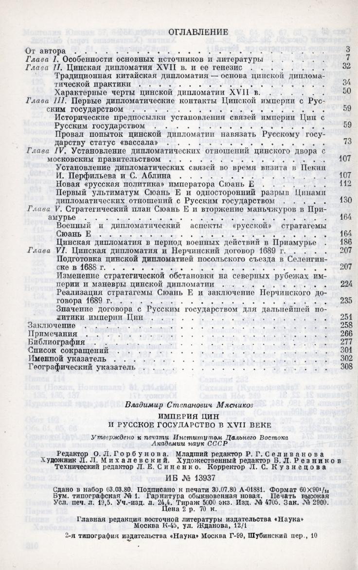 Империя Цин и Русское государство в XVII веке / В. С. Мясников ; Академия наук СССР, Институт Дальнего Востока. - Москва : Наука, 1980. - 310, [2] с.