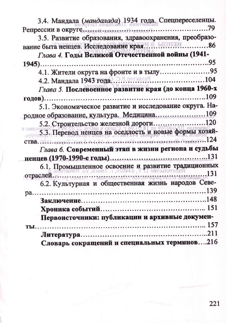 Ненцы в истории Ямало-Ненецкого автономного округа / В. П. Петрова, Г. П. Харючи ; Научный центр гуманитарных исследований коренных малочисленных народов Севера Ямало-Ненецкого автономного округа. - Томск : Издательство Томского университета, 1999. - 221 с., [4] л. ил. : ил. ).