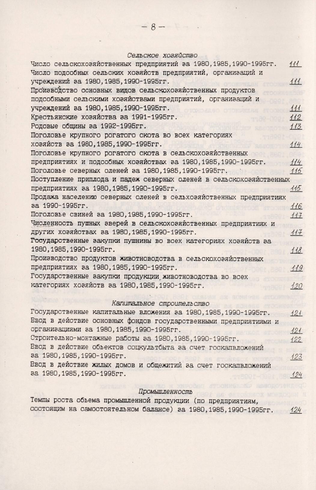 Некоторые показатели экономического и социального развития районов проживания малочисленных народов Севера и Арктических районов в 1980, 1985, 1990-1995 гг. / [Государственный комитет по статистике Республики Саха (Якутия)]. - Якутск : [б. и.], 1996. - 150 с.
