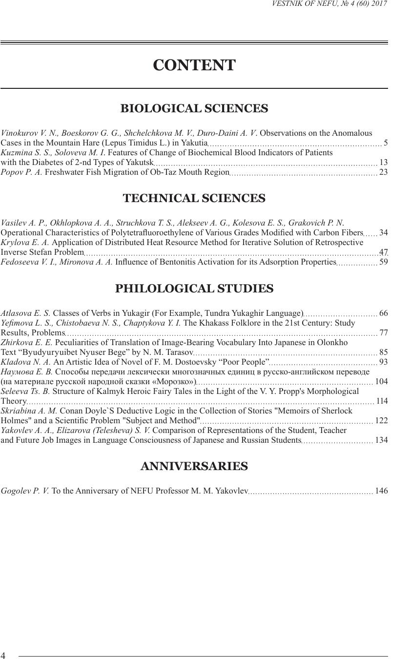 - 4. Вестник Северо-Восточного федерального университета им. М. К. Аммосова, 2017, №5 (61)