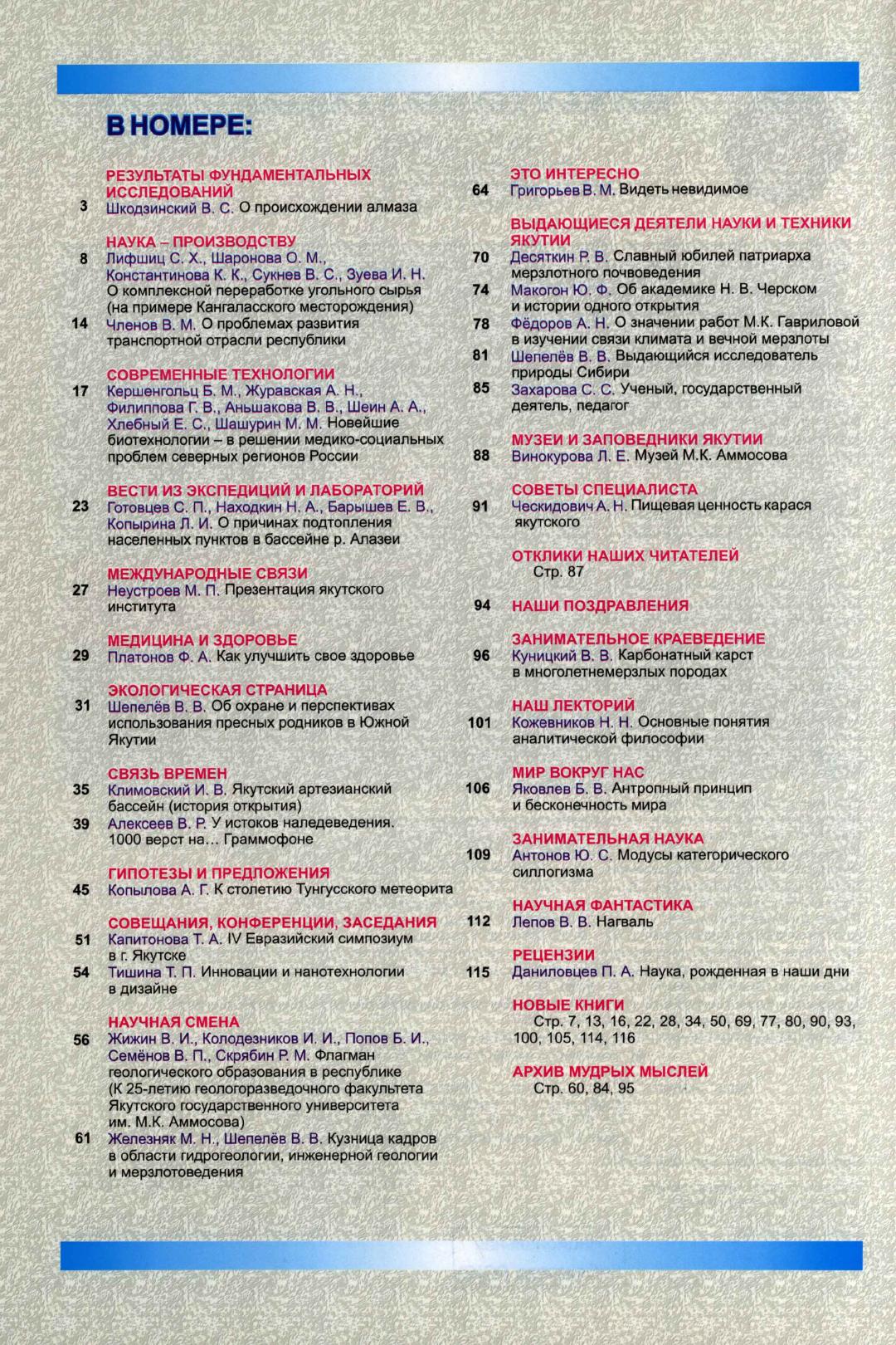 Наука и техника в Якутии : науч.-попул. журн. / М-во науки и проф. образования РС (Я) [и др.]. - Якутск : Изд-во СО РАН. Якут. фил., 2008. - N 2 (15). - 116 с.