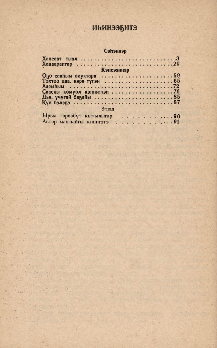 Хахсаат тыал: cэһэннэр, кэпсээннэр, этюд