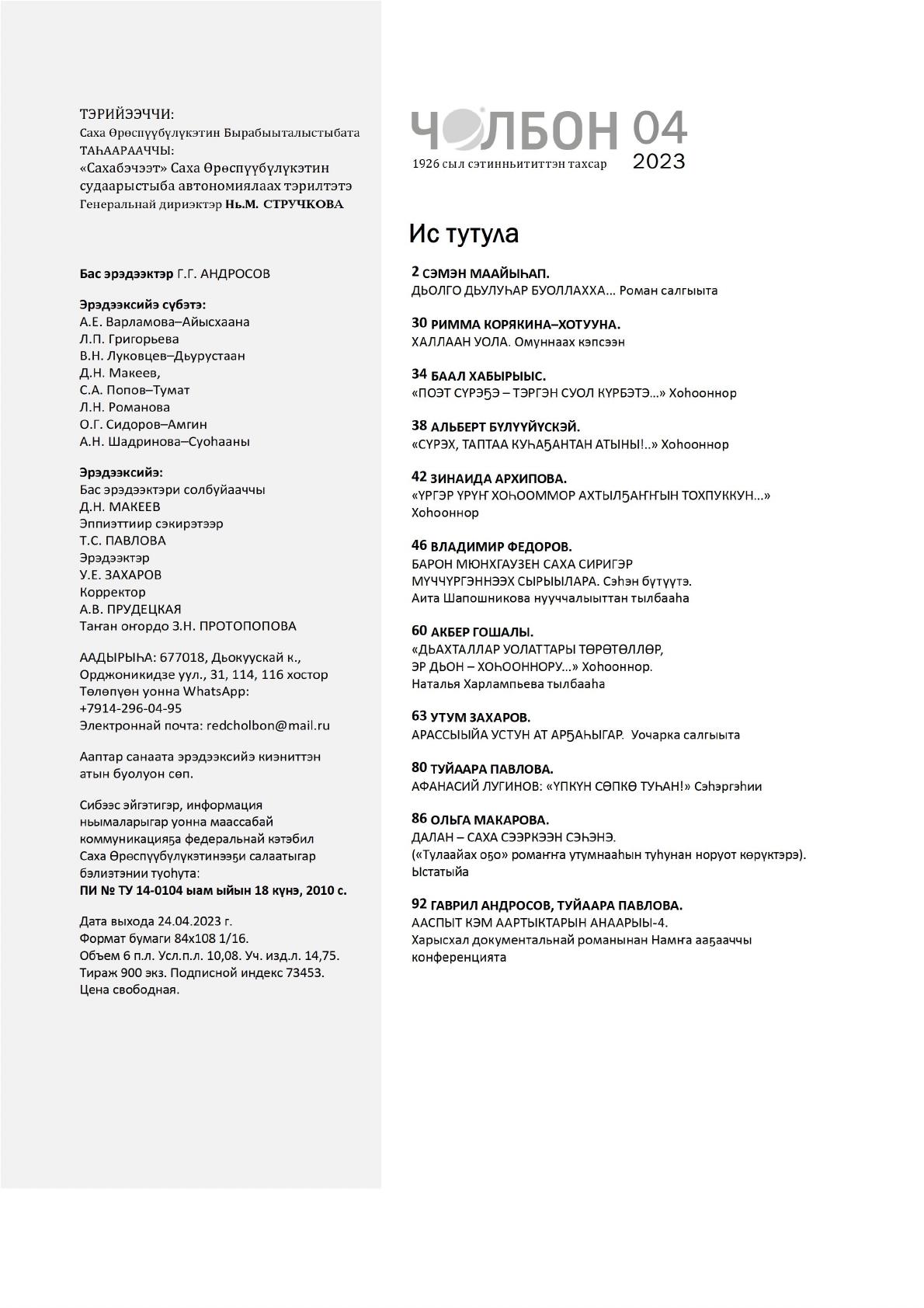 2023, N 4, муус устар. - 96 с.