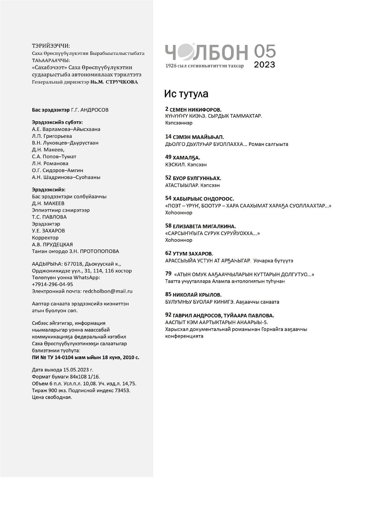 - 5. Чолбон, 2023, №6 (бэс ыйа)