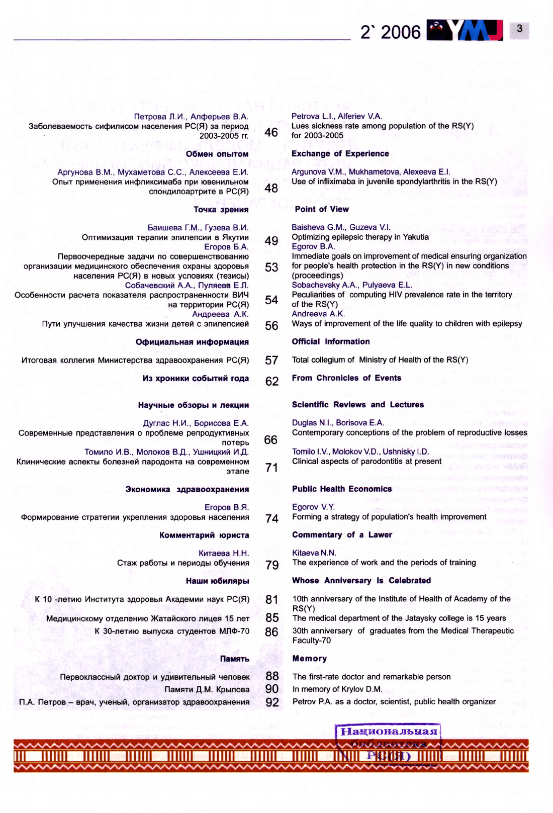 - Периодические издания Якутии (конец XIX – XXI вв.) > Журналы > Якутский медицинский журнал > 2006,