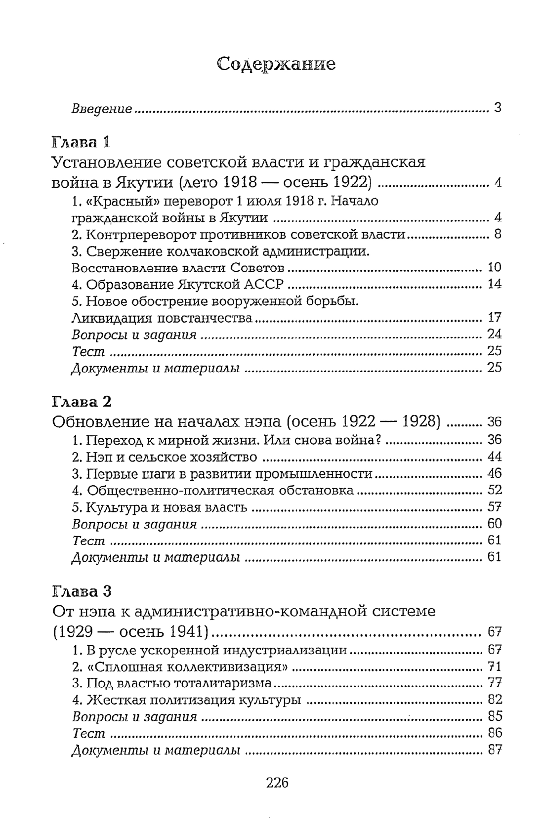 В пособии с современных позиций рассмотрены основные тенденции социально-экономического, общественно-политического и духовного развития Якутии в советское и постсоветское время. В нем освещены боевые, трудовые и творческие свершения разных поколений якутян, отдавших свои силы, знания и жизнь делу освоения и развития республики. Пособие предназначено для младших курсов вузов республики, средних специальных учебных заведений, а также для учащихся старших классов общеобразовательных школ всех типов
