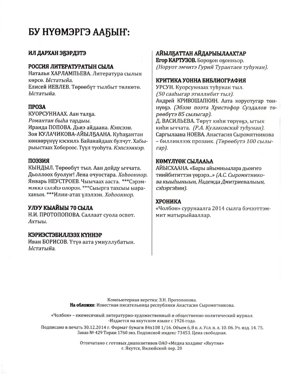 - 3. Чолбон: уус-уран литературнай уонна общественнай-политическай сурунаал, 2015, №4