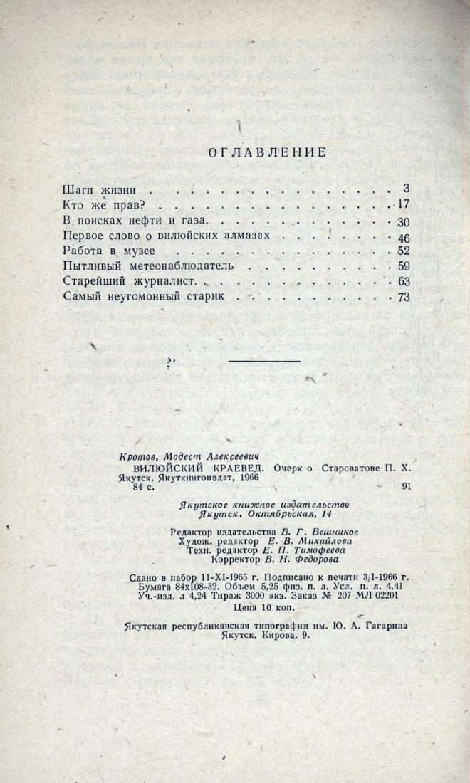Вилюйский краевед : (очерк о Староватове П. Х.) / Модест Кротов. - Якутск : Книжное издательство, 1966. - 82, [2] с.
