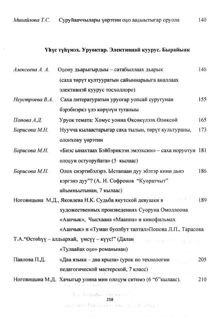 В издании представлены статьи учителей якутского языка и литературы, педагогов-исследователей. В проблематику сборника включен широкий круг вопросов, связанный с методикой преподавания родного языка и литературы в начальной и средней общеобразовательной системы образования в условиях реализации социокультурного подхода в образовании