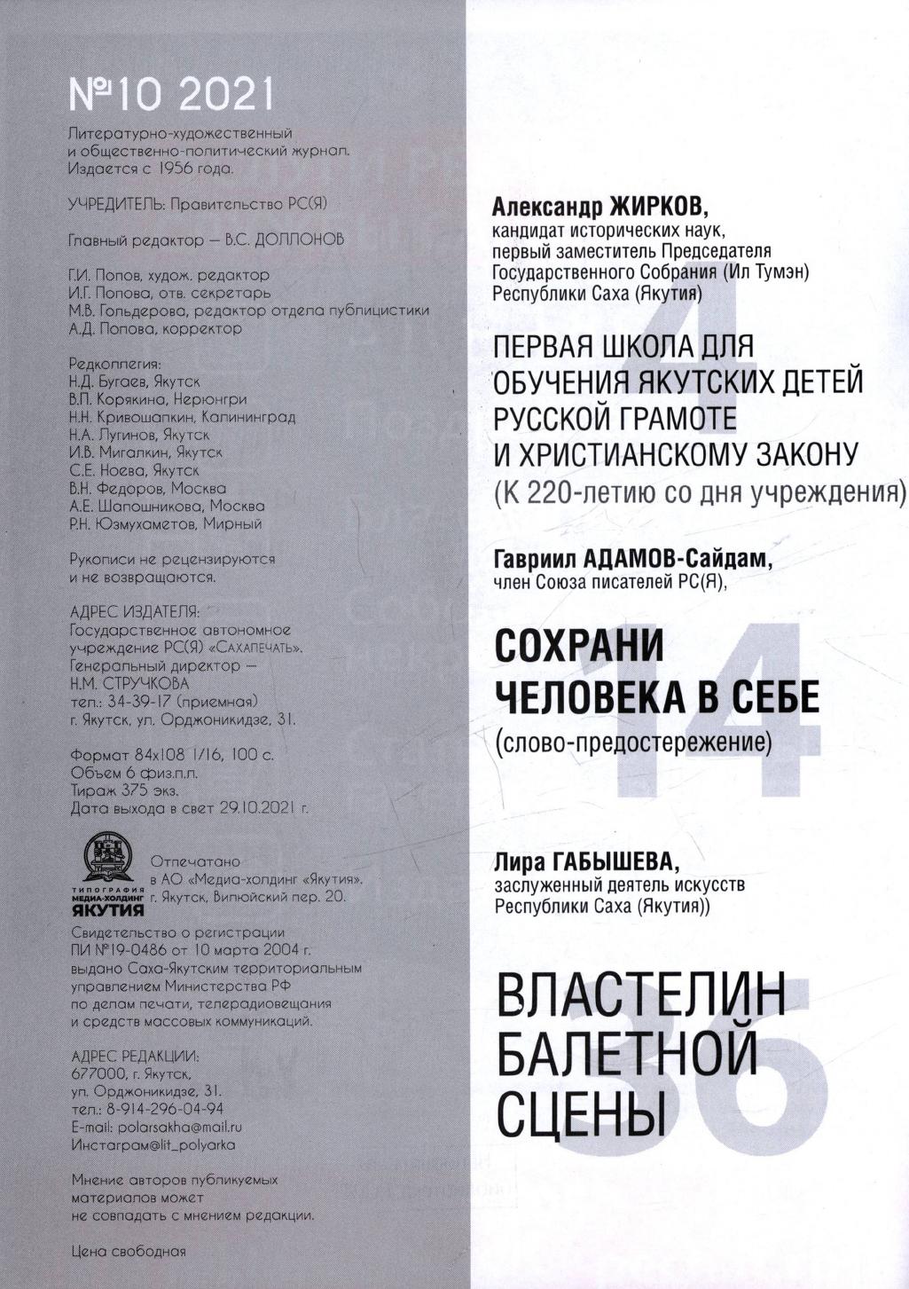 - 10. Полярная звезда: литературно-художественный и общественно-политический журнал, 2021, №11