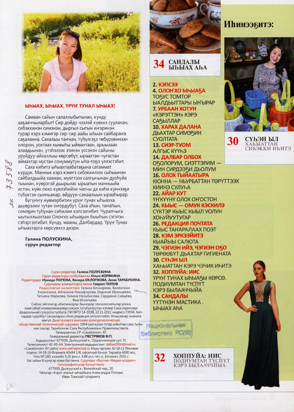 - 2. Далбар хотун: дьахталларга аналлаах общественнай-политическай сурунаал, 2015, №2 (102)