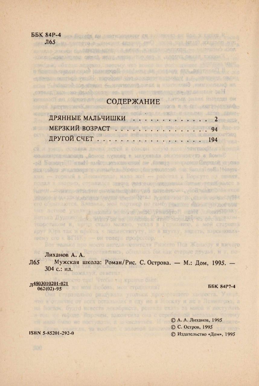 Мужская школа : роман / Альберт Лиханов ; художник С. Остров. - Москва : Дом, 1995. - 300, [2] с.