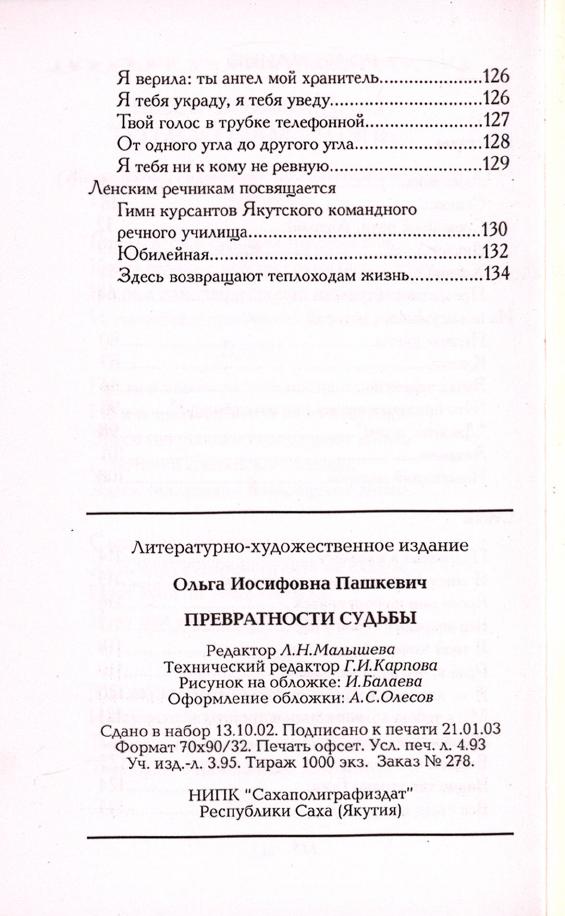 Превратности судьбы / Ольга Пашкевич. - Якутск : Сахаполиграфиздат, 2003. - 136 с.