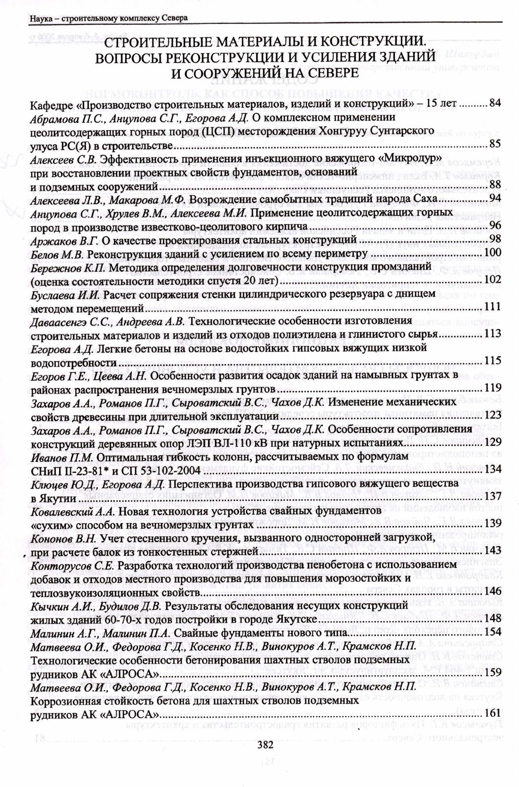 Материалы региональной научно-практической конференции "Наука - строительному комплексу Севера" : посвященной 70-летию строительного комплекса РС(Я) и 50-летию Якутского государственного университета имени М. К. Аммосова / редакционная коллегия: С. Я. Дереповский и др.]. - Якутск : Издательство ЯГУ, 2006. - 385 с. : ил., табл. ).