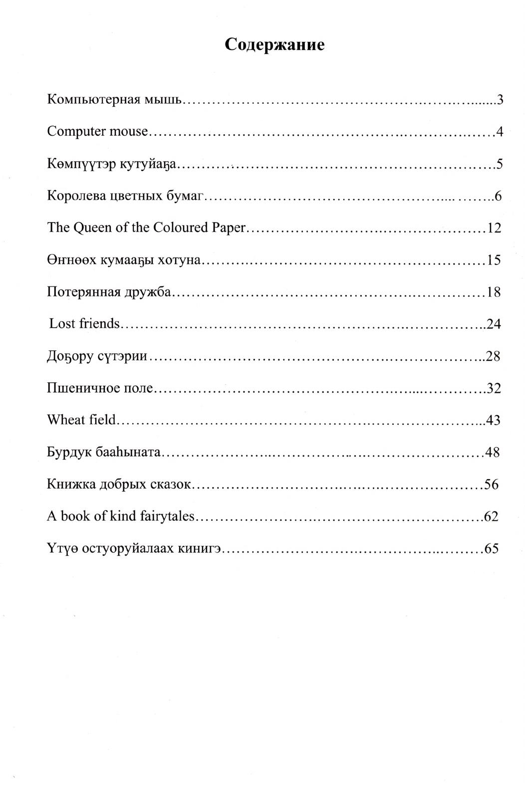 Книга добрых сказок / Любовь Олесова-Тапталаана ; [ред. рус. яз. С. П. Васильева ; ред. якут. яз. Е. С. Новгородова ; ред. англ. яз. Е. А. Кычкина ; ил. С. Н. Егорова]. - Якутск : СМИК-Мастер. Полиграфия, 2016. - 67, [1] с.