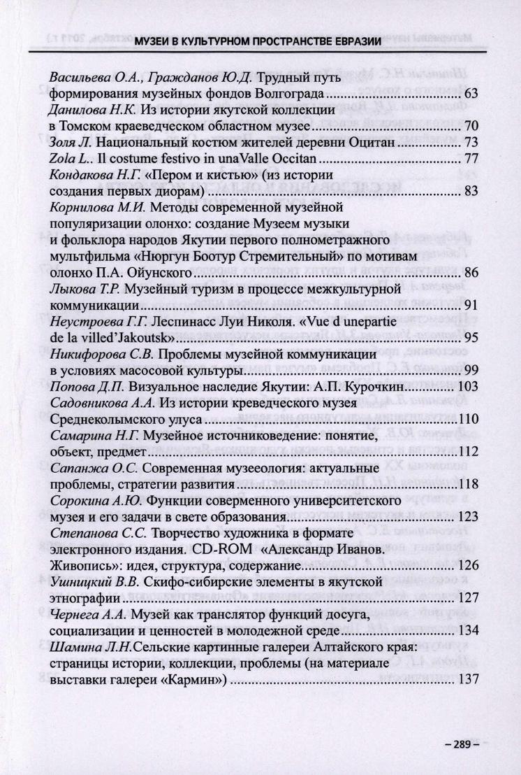 Музеи в культурном пространстве Евразии : материалы научной конференции с международным участием (октябрь, 2011 г.) / [научные редакторы Г. Г. Неустроева, Л. А. Кузьмина] . - Якутск : ИД СВФУ, 2013. - 291, [1] с., [4] л. ил., портр.